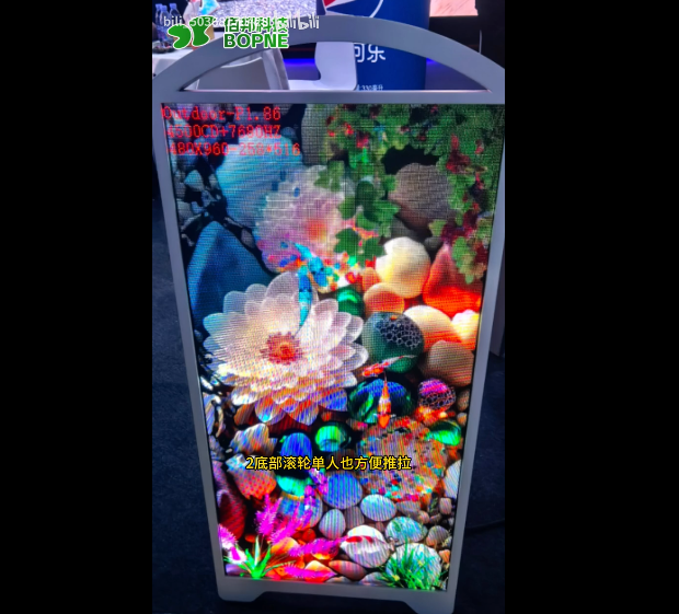 百邦立式一体移动全息透明屏,您值得拥有,移动方便,安装简单快捷,通电就能成像,显示画质清晰,通透度高。