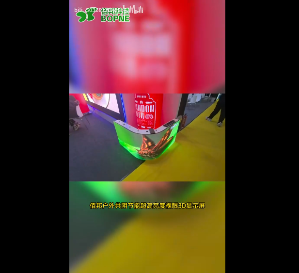 佰邦户外共阴节能,超高亮度裸眼3D显示屏,逼真动感的3D视觉,可以为您量身定制3D素材,裸眼3D动画给您带来不一样的视觉震撼