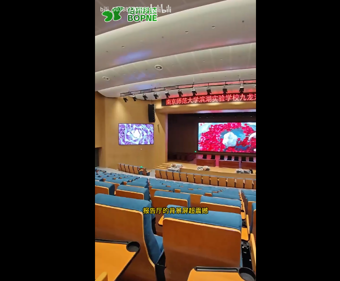 报告厅的背景屏采用小间距LED技术,无缝高清显示,尺寸超大,色彩超逼真,4K 8K信号直显无压力,舞台左右抚平也超给力,和背景屏默契配合,是现代会议、学术交流和大型演艺活动的核心视觉设备,带来超棒沉浸体验